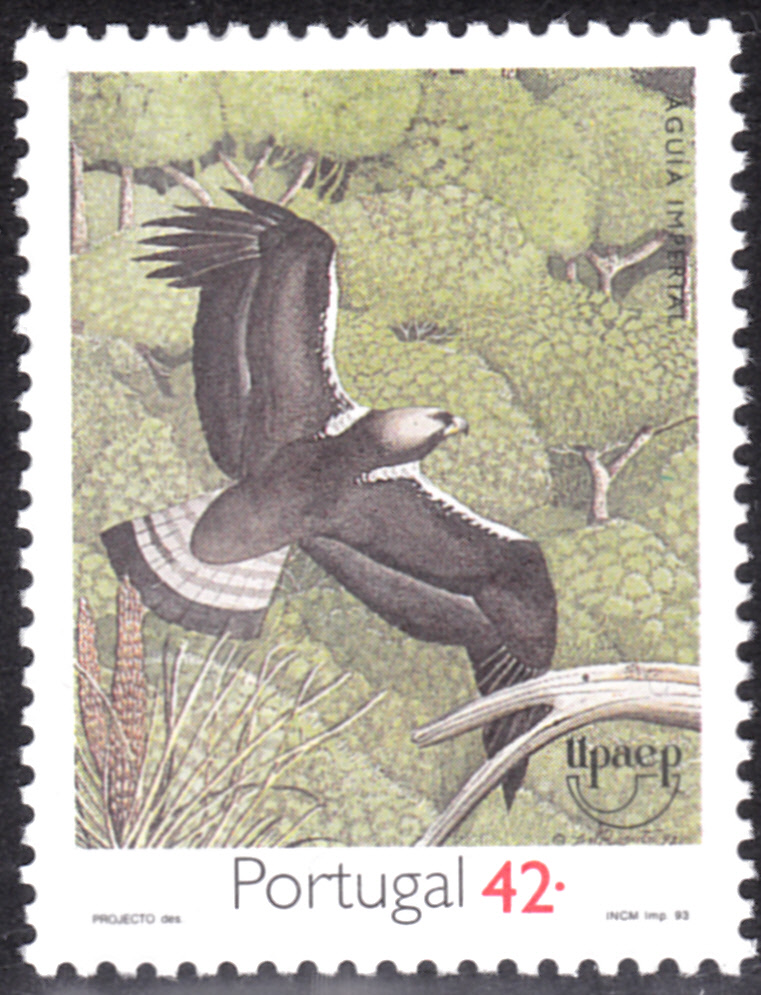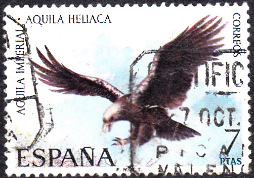 Auf dieser Marke aus Spanien ist laut Beschriftung ein Kaiseradler (Aquila heliaca) zu sehen. Da die Marke aber in einer Serie "Iberische Tierwelt" erschienen ist, muss die spanische Post sich noch an die alte Systematik gehalten haben und heute falsche Benennung gewählt haben. Der (Östliche) Kaiseradler kommt nämlich auf der Spanischen Halbinsel gar nicht vor.