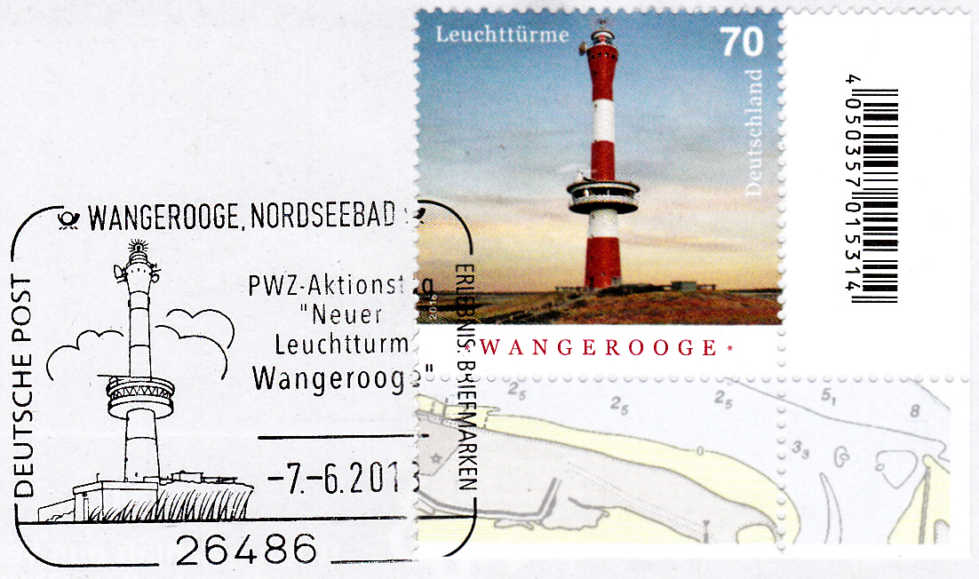 Zur Marke mit dem Leuchtturm Wangerooge gab es im Nordseebad Wangerooge am Ausgabetag einen Sonderstempel, der im Stempelbild ebenfalls den Leuchtturm zeigt.
