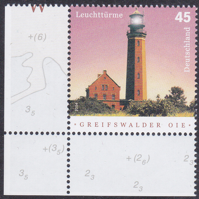 Die selbstklebenden Marke mit dem Leuchtturm "Greifswalder Oie" (MiNr 2478) wurde hier bereits gezeigt. Jetzt folgt eine nassklebende Marke (MiNr 2409) vom Eckrand mit diesem Motiv.
