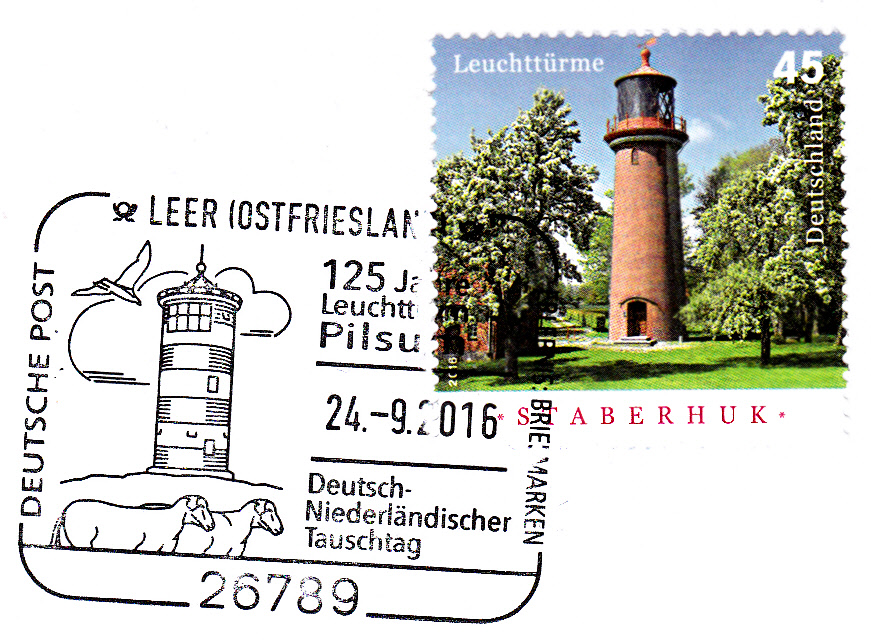 In diesem Sonderstempel aus Leer vom 24.9.2016 ist der Leuchtturm Pilsum abgebildet.
