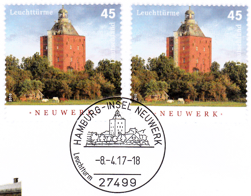 Seit 8.4.2017 zeigt der Tagesstempel 24499 Hamburg-Insel Neuwerk den hier schon vorgestellten Leuchtturm der Insel Neuwerk.