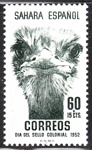 Spanisch-Sahara (spanisch Sahara Español) war die Bezeichnung für eine spanische Kolonie in Nordwest-Afrika, die zwischen 1884 und 1975 bestand. Am 23.11.1952 erschienen dort drei Marken zum Tag der Briefmarke 1952 mit der Abbildung eines Straußenkopfes.