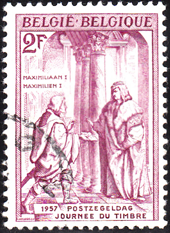 In Belgien erschien am 19.5.1957 eine Marke zu 2 Franc (MiNr 1056) zum Tag der Briefmarke 1957. Die Marke zeigt einen Holzschnitt von Hans Burgkmair (1473-1531) mit der Szene "Maximilian I. (1459-1519), deutscher Kaiser, erhält einen Brief durch Boten".