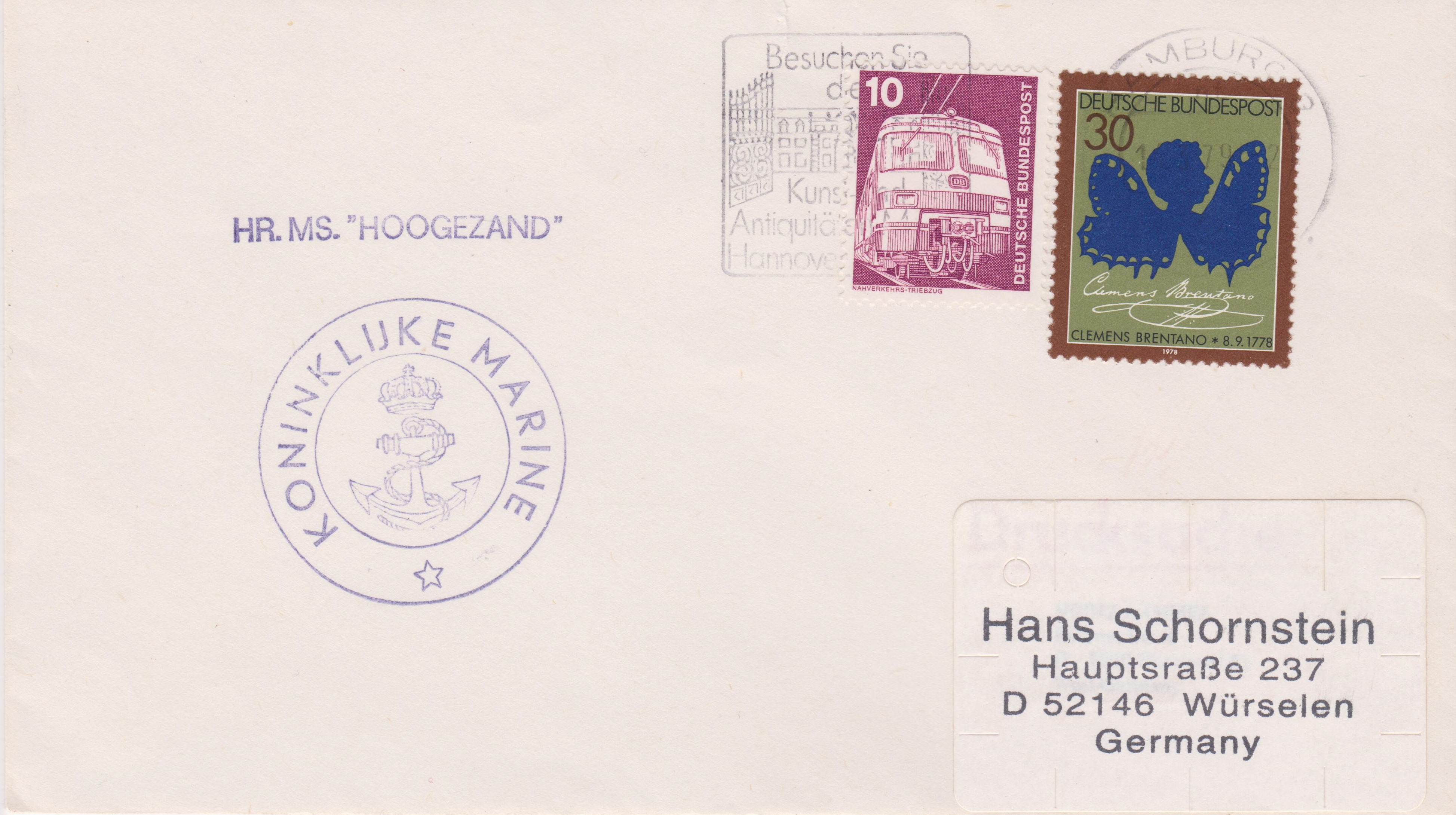 HR. MS. "NAALDWIJK", aufgegeben in HAMBURG: