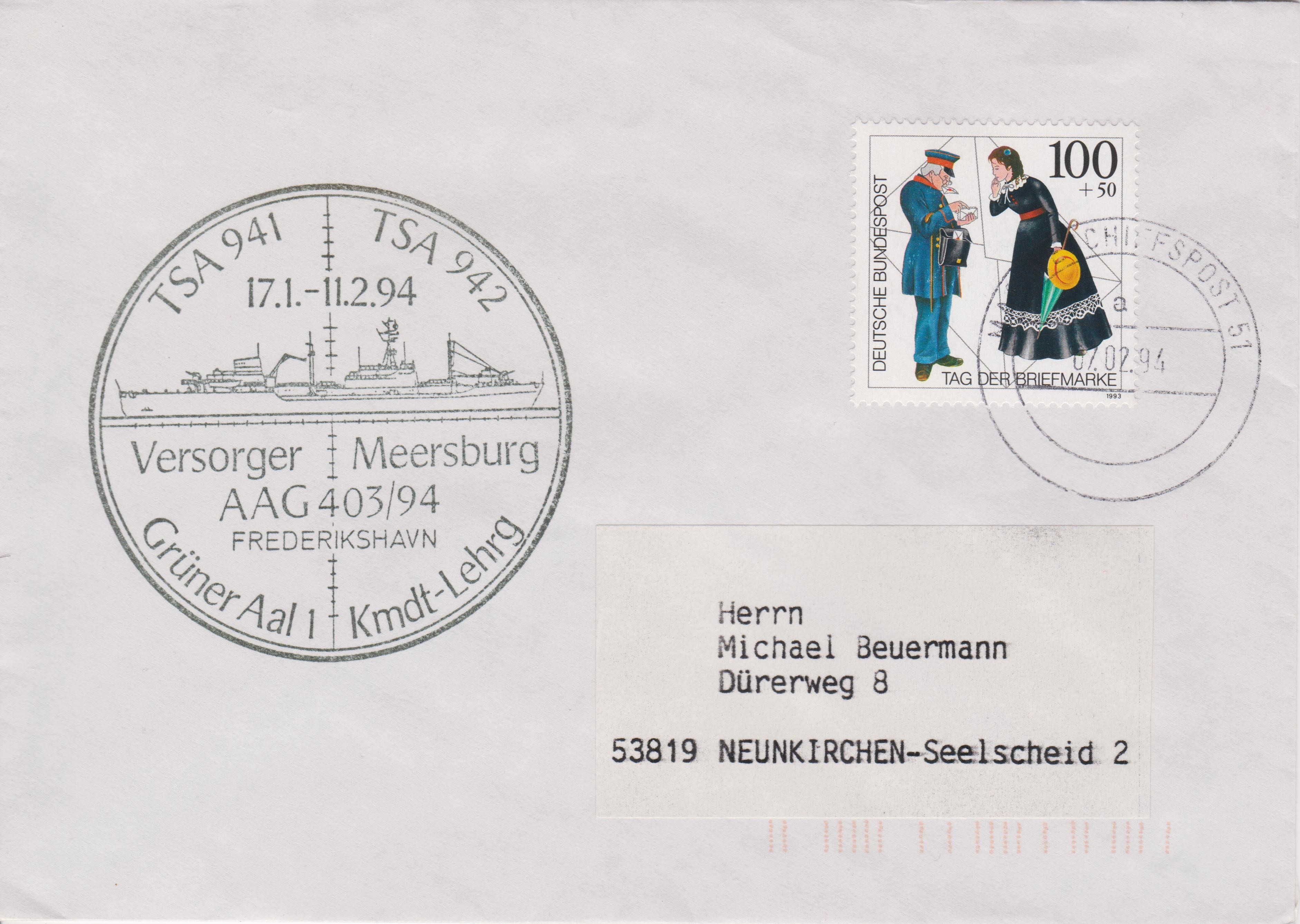 Der Versorger Meersburg nahm vom 17.01.1994 bis zum 11.02.1994 an der Übung Grüner Aal 1 Kmdt-Lehrg teil, was dieser Beleg dokumentiert: