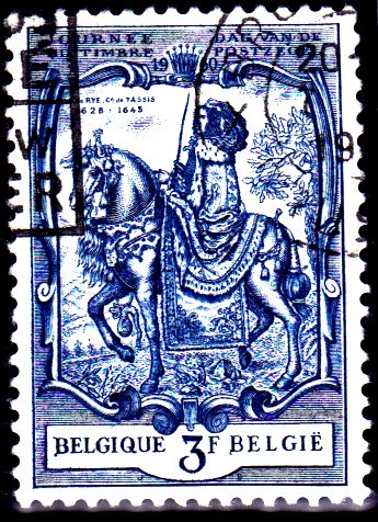 In Belgien erschien am 20.3.1960 diese Sondermarke zum Tag der Briefmarke 1960 (MiNr 1178) mit der Abbildung "Alexandrine de Rye, Gräfin von Taxis, zu Pferde" (Teil eines Wandteppichs).