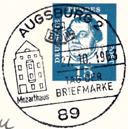 Sonderstempel vom 27.10.1963 aus Augsburg zum Tag der Briefmarke 1963.