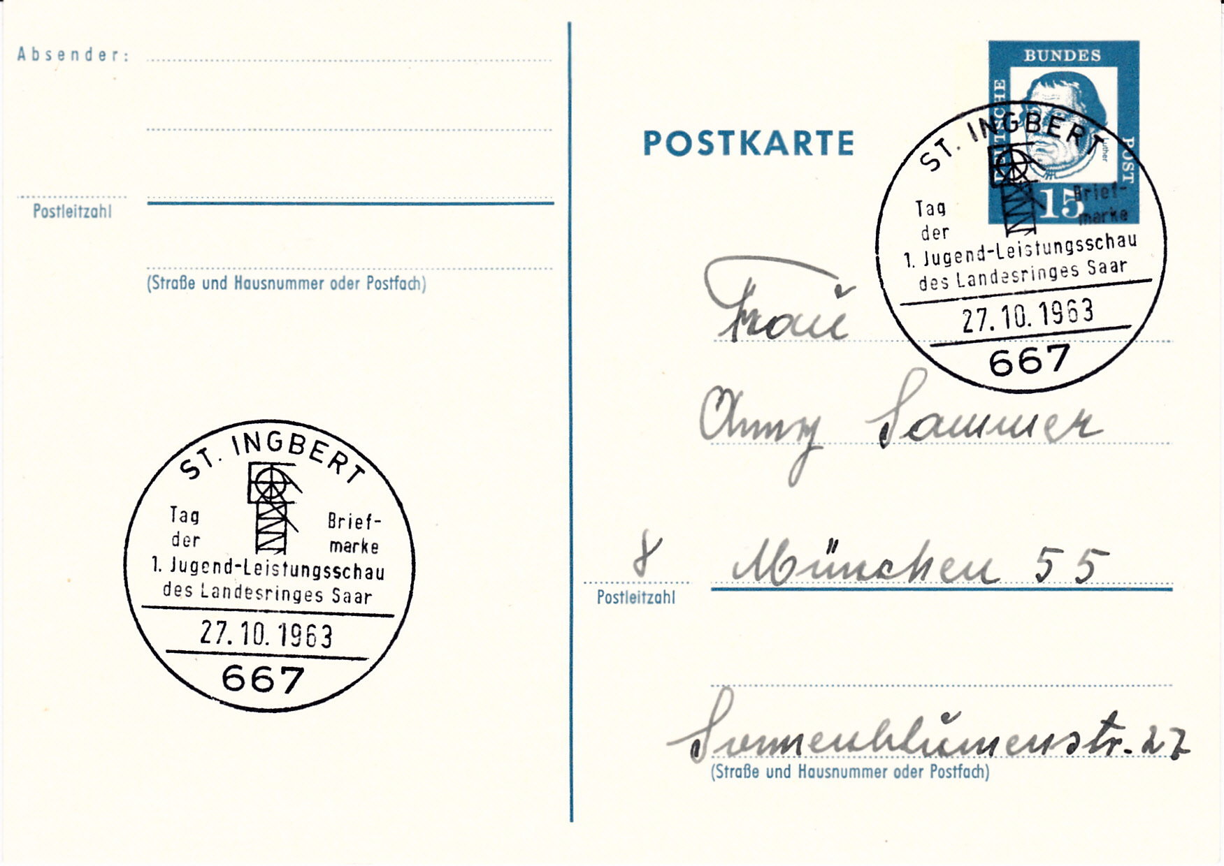 Sonderstempel vom 27.10.1963 aus St.Ingbert zum Tag der Briefmarke 1963.