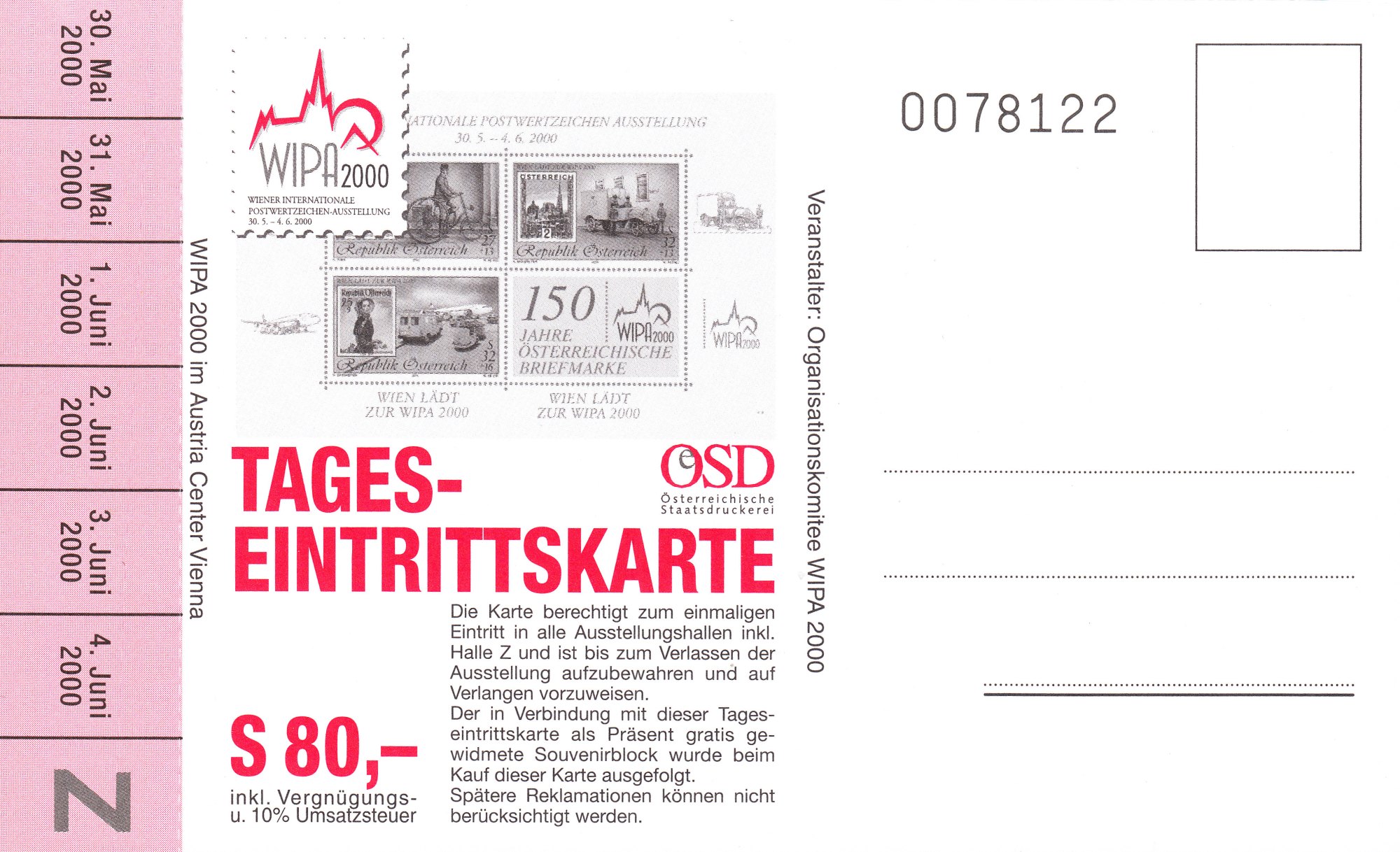 Auf den zu 80 Schilling verkauften Tageseintrittskarten zur WIPA 2000 wurde Block 14 abgebildet: