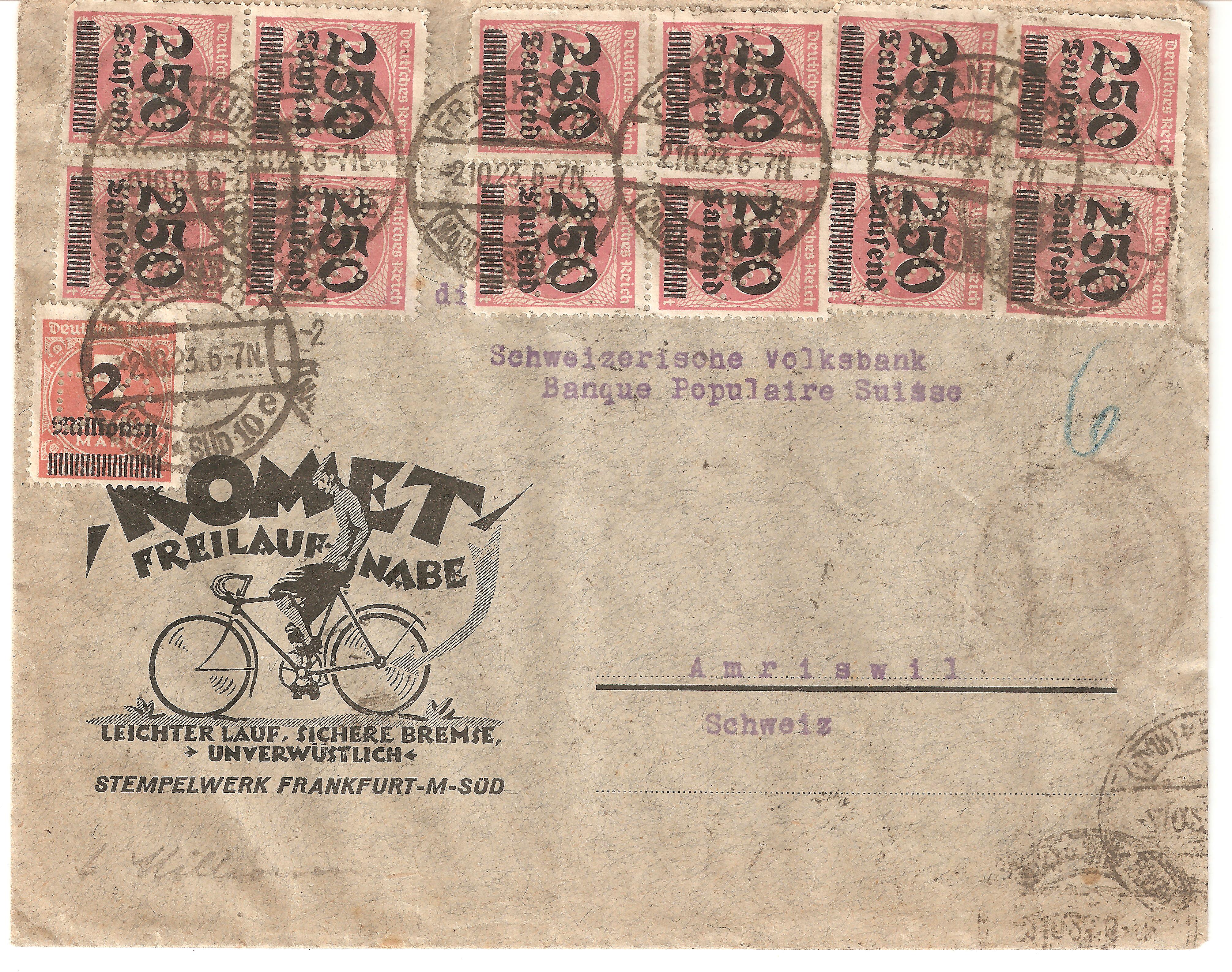 Das besondere an diesem Beleg ist, dass die Marken die Firmenlochungen der Firma Komet haben.