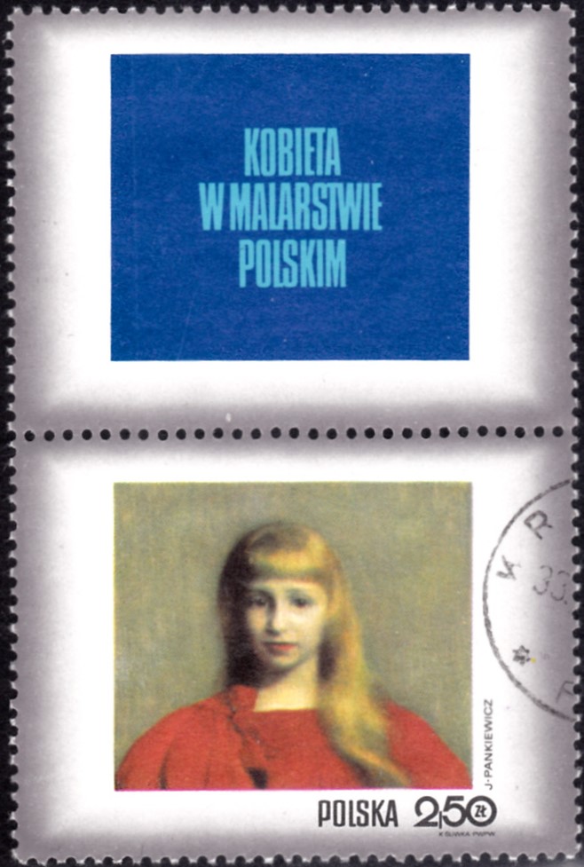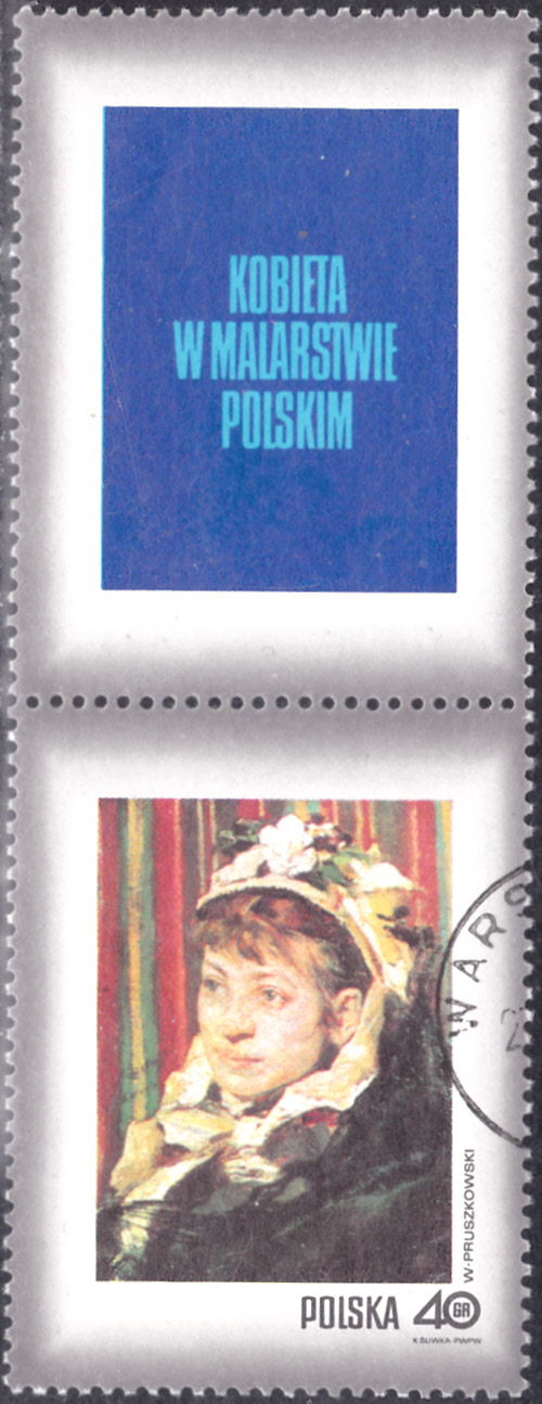 Zum Tag der Briefmarke 1970 gab es in Polen eine Sondermarkenserie mit Motiven zum Thema "Die Frau in der polnischen Malerei". Aus dieser Serie kommt diese Marke (MiNr 2110) mit der Abbildung "Porträt der Frau Fedorowicz" nach einem Gemälde von Witold Pruszkowski (1846-1896).
