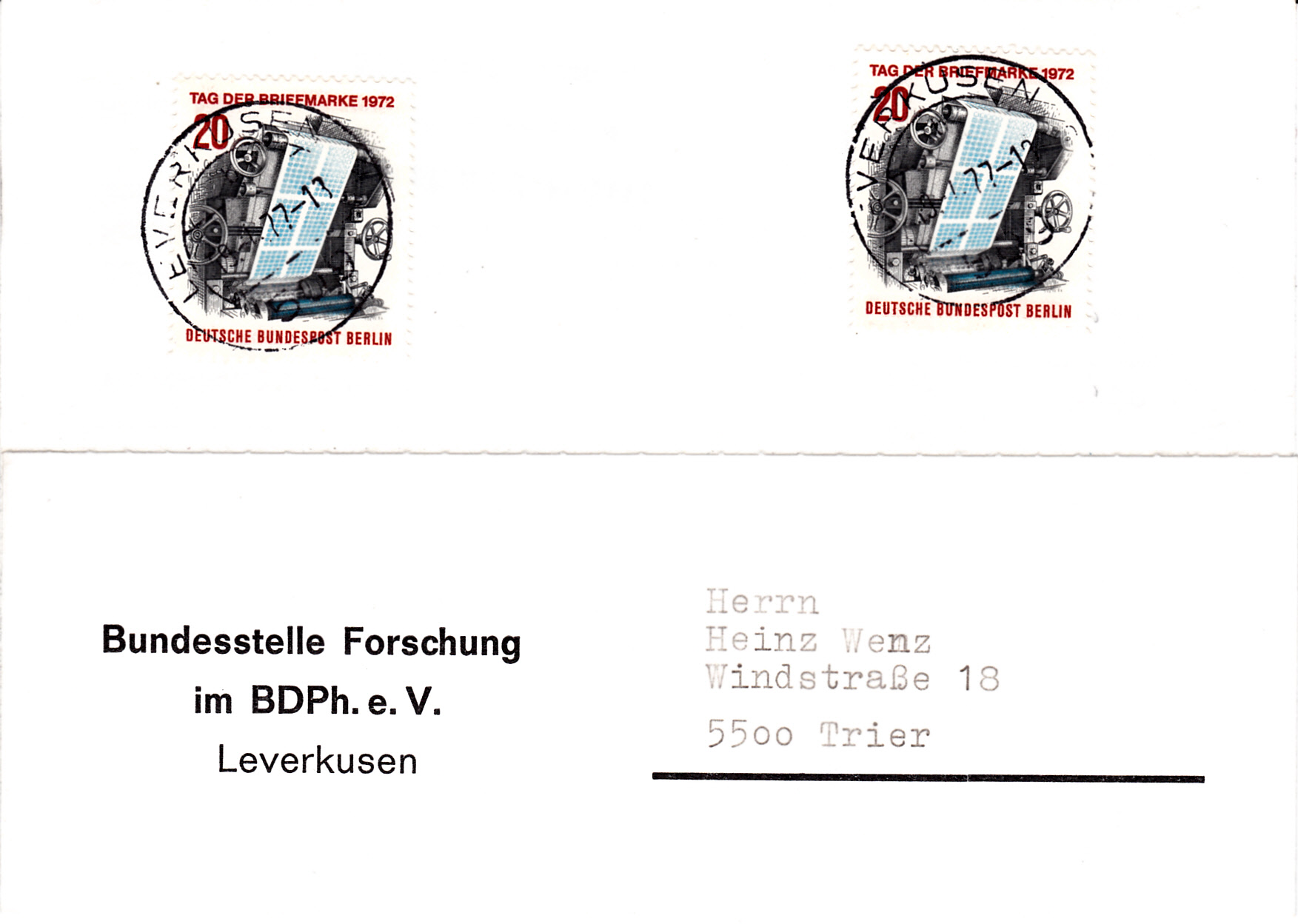 Tag der Briefmarke eine Einzelmarke (Berlin (West), MiNr. 439). Hier auf einem Ersttagsbrief verklebt.