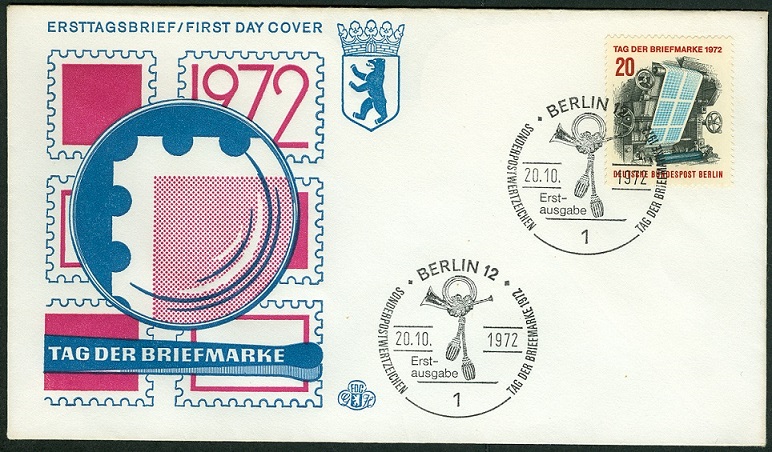 1972 gab es für die Sammlergemeinde zum Tag der Briefmarke eine Einzelmarke (Berlin (West), MiNr. 439). Hier auf einem Ersttagsbrief verklebt.