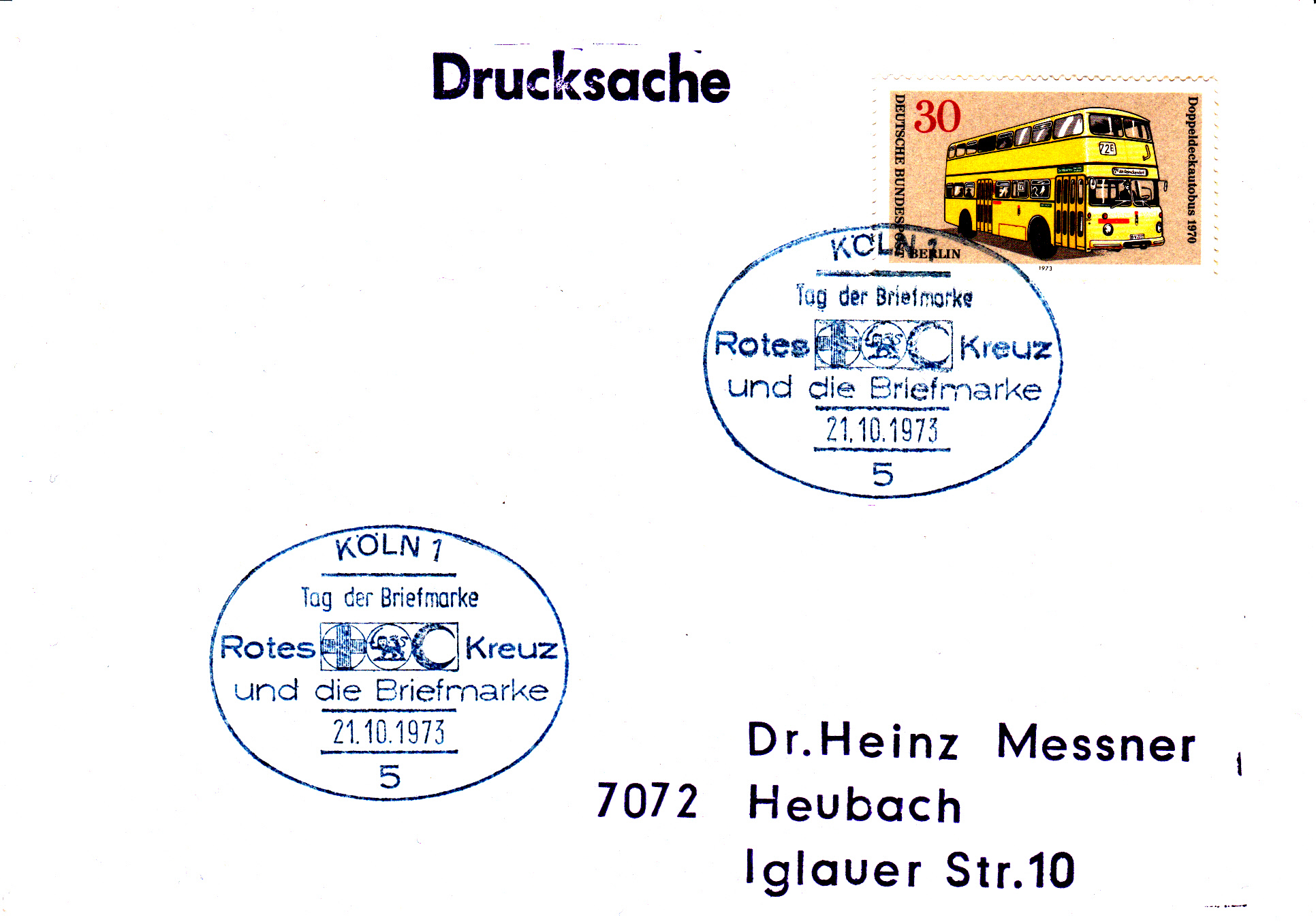 Drucksache mit Sonderstempel aus 5 Köln 1 vom 21.10.1073 zum Tag der Briefmarke.