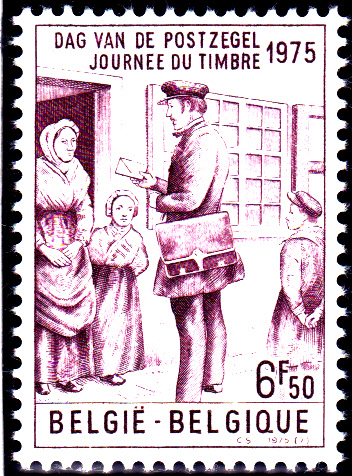 Zum TZag der Briefmarke 1975 erschien in Belgien diese Marke (MiNr 1814) mit der Abbildung eines Briefträgers aus dem Jahre 1840 nach einem Werk von James Thiriar.