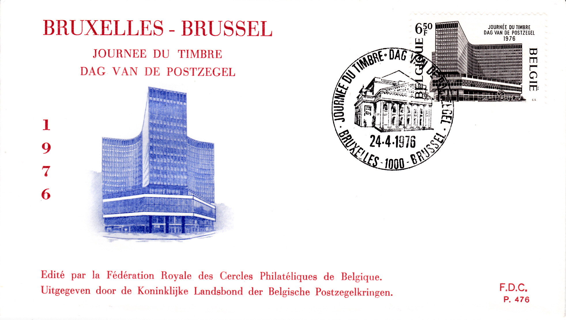 In Belgien erschien zum Tag der Briefmarke 1976 am 24.4.1976 diese Marke (MiNr 1855) mit der Abbildung des Centre Monnaie in Brüssel, dem Sitz der Briefmarkenversandstelle der belgischen Post.