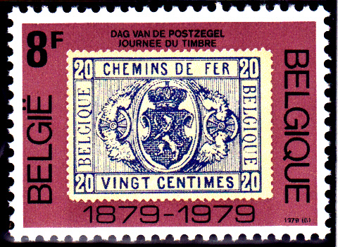 Die Marke vom 21.4.1979 zum Tag der Briefmarke 1979 aus Belgien (MiNr 1981) zeigt uns die belgische Eisenbahnpaketmarke MiNr. 2.