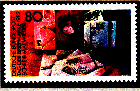 1982 verausgabte die Deutsche Bundespost am 14.10.1982 eine Sondermarke zum "Tag der Briefmarke" (MiNr 1154) mit der Abbildung von Schreibutensilien auf einem Schreibtisch.