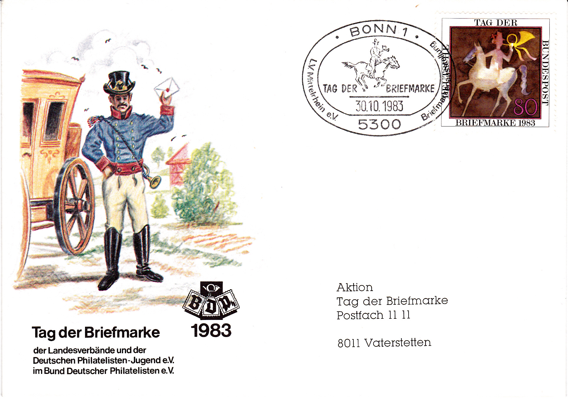 Sonderstempel aus Bonn zum Tag der Briefmarke 1983 des Landesverbandes Mittelrhein e.V. vom 30.10.1983