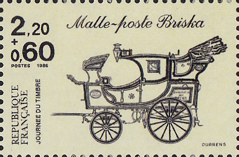 In Frankreich erschien am 5.4.1986 eine Marke zum Tag der Briefmarke 1986 mit der Abbildung einer Postkutsche "Briska" (um 1830). Die Marke ist im Bogen in der Farbe schwarzlilapurpur auf weißorangerotem Papier mit der Zähnung K 12 3/4 und im Markenheftchen in der Farbe schwarzviolettbraun auf weißgelbem Papier in der Zähnung K 13 erschienen.