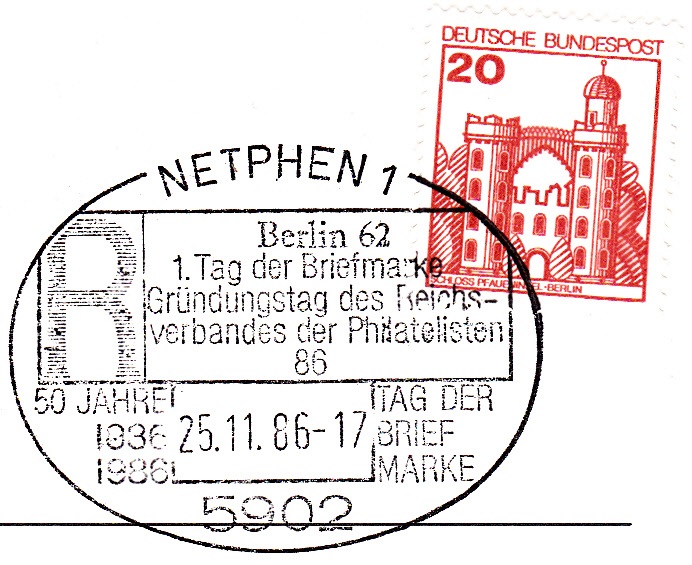 Sonderstempel vom 25.11.1986 aus Netphen zu "50 Jahre Tag der Briefmarke".