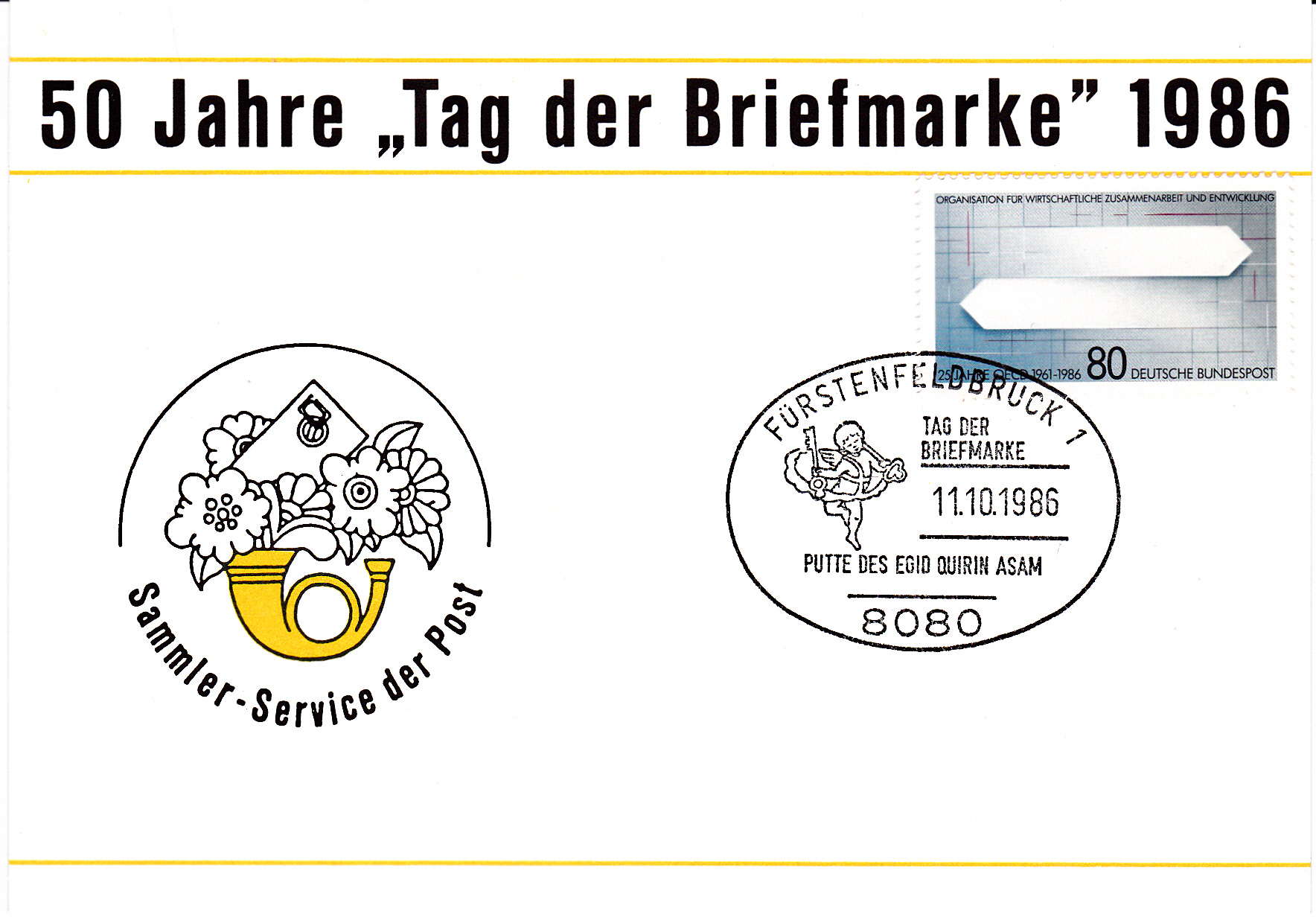 Sonderstempel zum Tag der Briefmarke 1986 aus Fürstenfeldbruck vom 11.10.1986 wieder mal auf einer Stempelkarte des Sammler-Service.