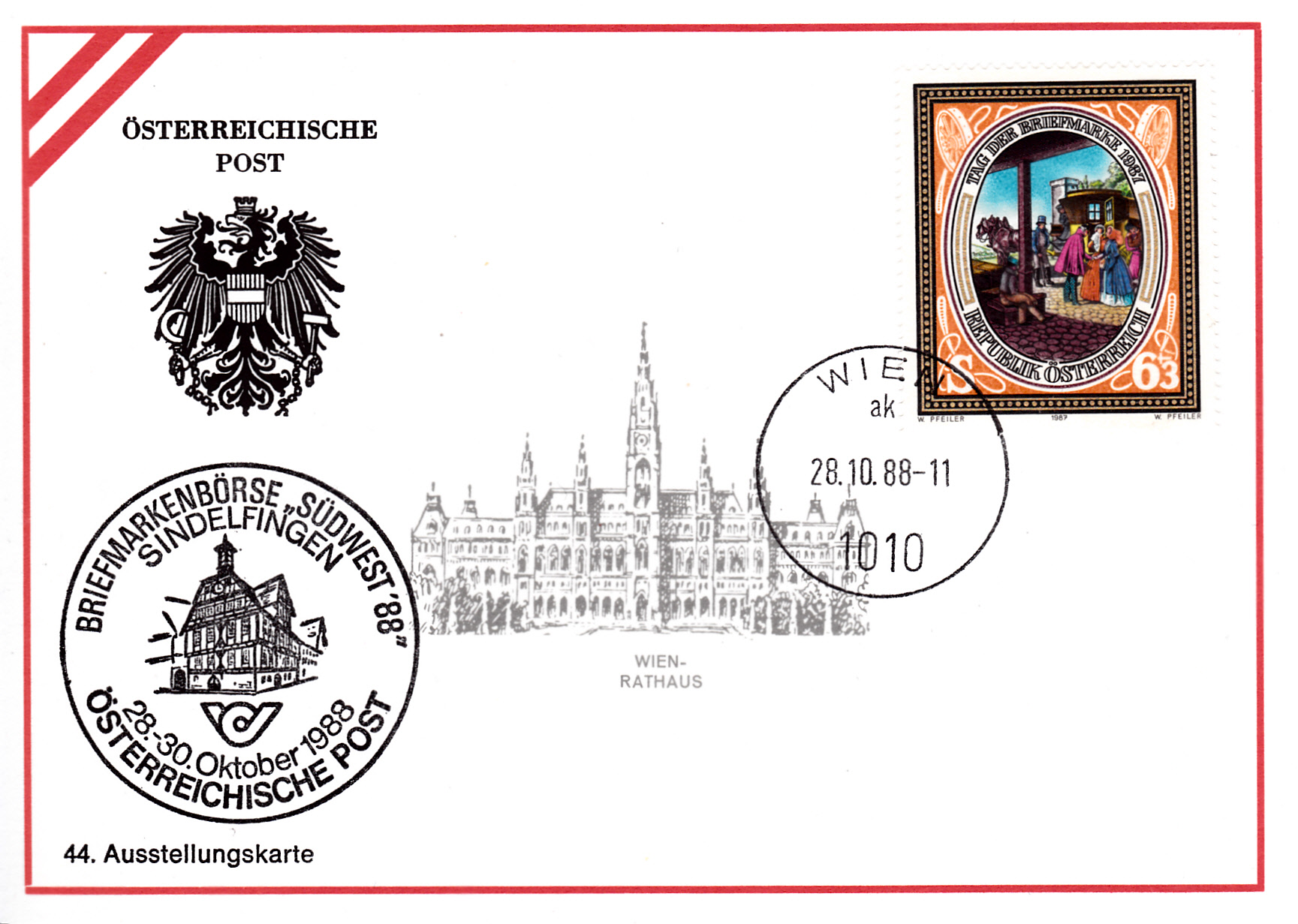 Die Marke zum Tag der Briefmarke 1987 wurde von der Österreichischen Post auch auf der "44. Ausstellungskarte" zur Briefmarkenbörse Sindelfinger verwendet und dort verkauft.
