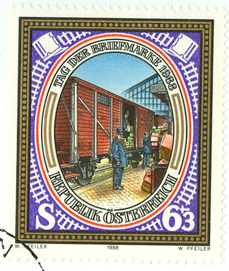 Das Motivthema zum Tag der Briefmarke für das Jahr 1988 war "Bahnpost".