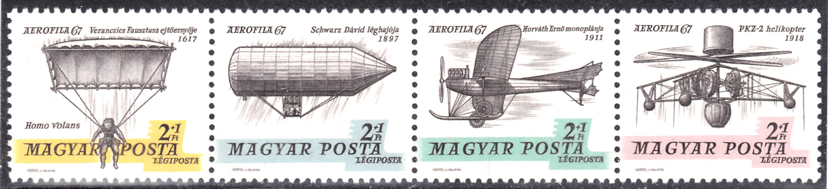 Zur Internationalen Luftpostmarken-Ausstellung AEROFILA 67 in Budapest erschien in Ungarn eine Marke (MiNr 2320 A) mit dem Helikopter "PKZ-2".