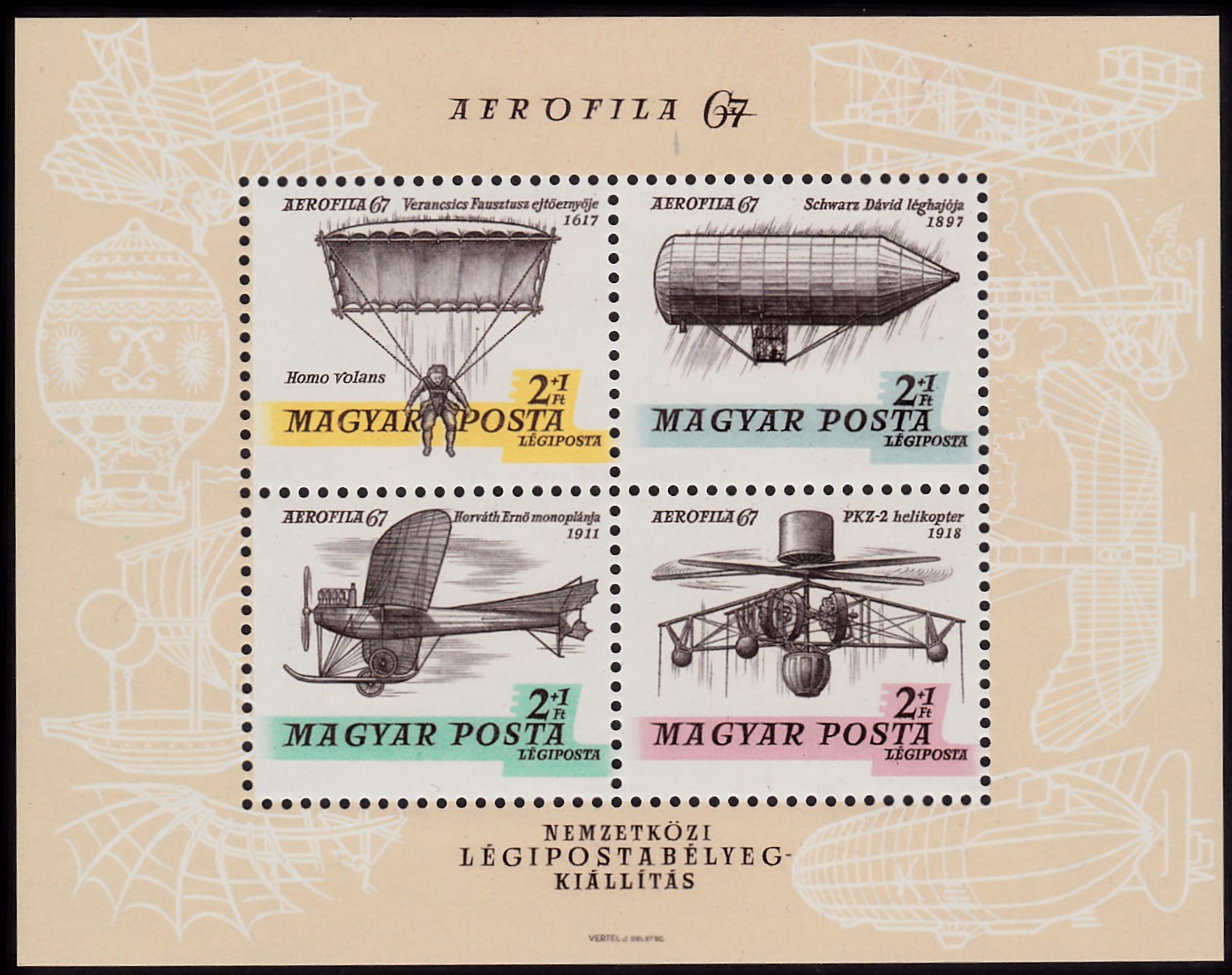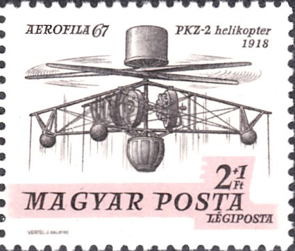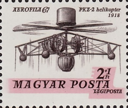 Zur Internationalen Luftpostmarken-Ausstellung AEROFILA 67 in Budapest erschien in Ungarn eine Marke (MiNr 2320 A) mit dem Helikopter "PKZ-2".