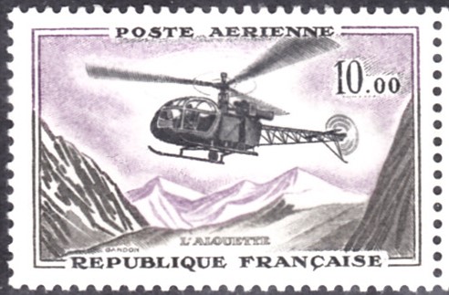 Auf einer Marke aus Frankreich (MiNr 1282) können wir einen Hubschrauber "Alouette" sehen.