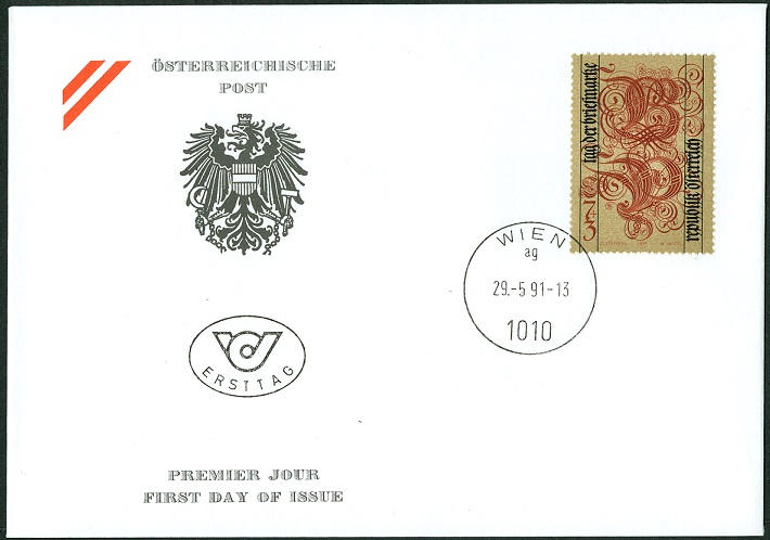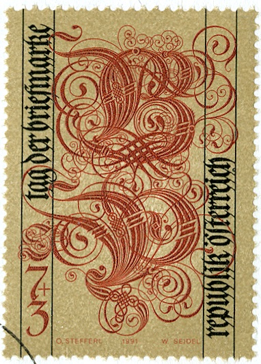 In Österreich gab es am 29.5.1991 diese Marke zum Tag der Briefmarke 1991 (MiNr 2032). Im Markenbild ist das Buchstabenpaar "B" für "BRIEFMARKE" und "P" für "PHILATELIE" zu sehen.