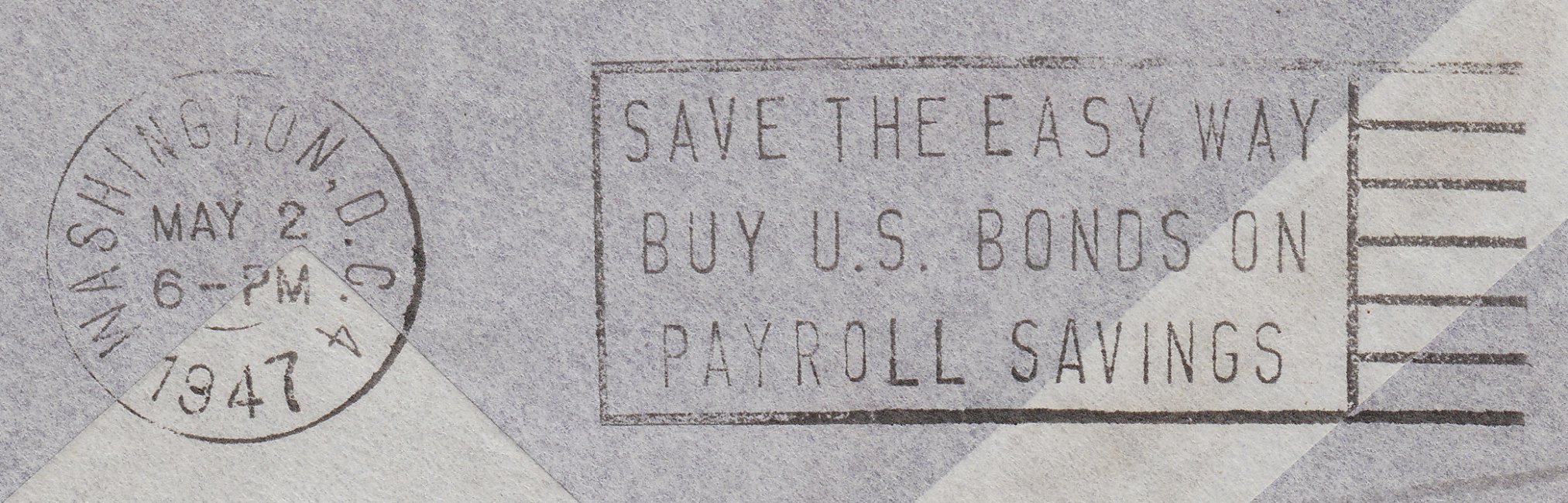 So landete die DC-4 nach 20 Stunden und 47 Minuten in Washington, was ein rückseitiger Ankunftstempel auf diesem auf diesem Erstflug beförderten Beleg dokumentiert: