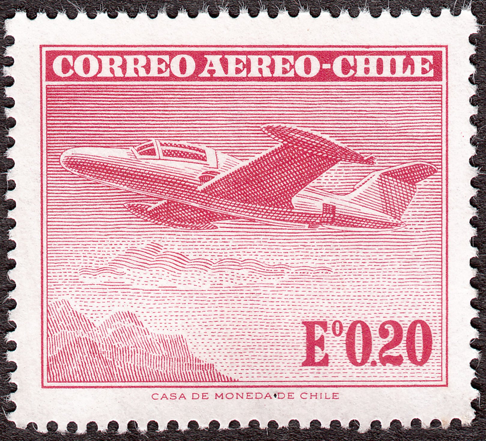 Dieses Postwertzeichen aus dem Jahre 1960 aus Chile zeigt uns ein BEECHCRAFT MONOPLANE: