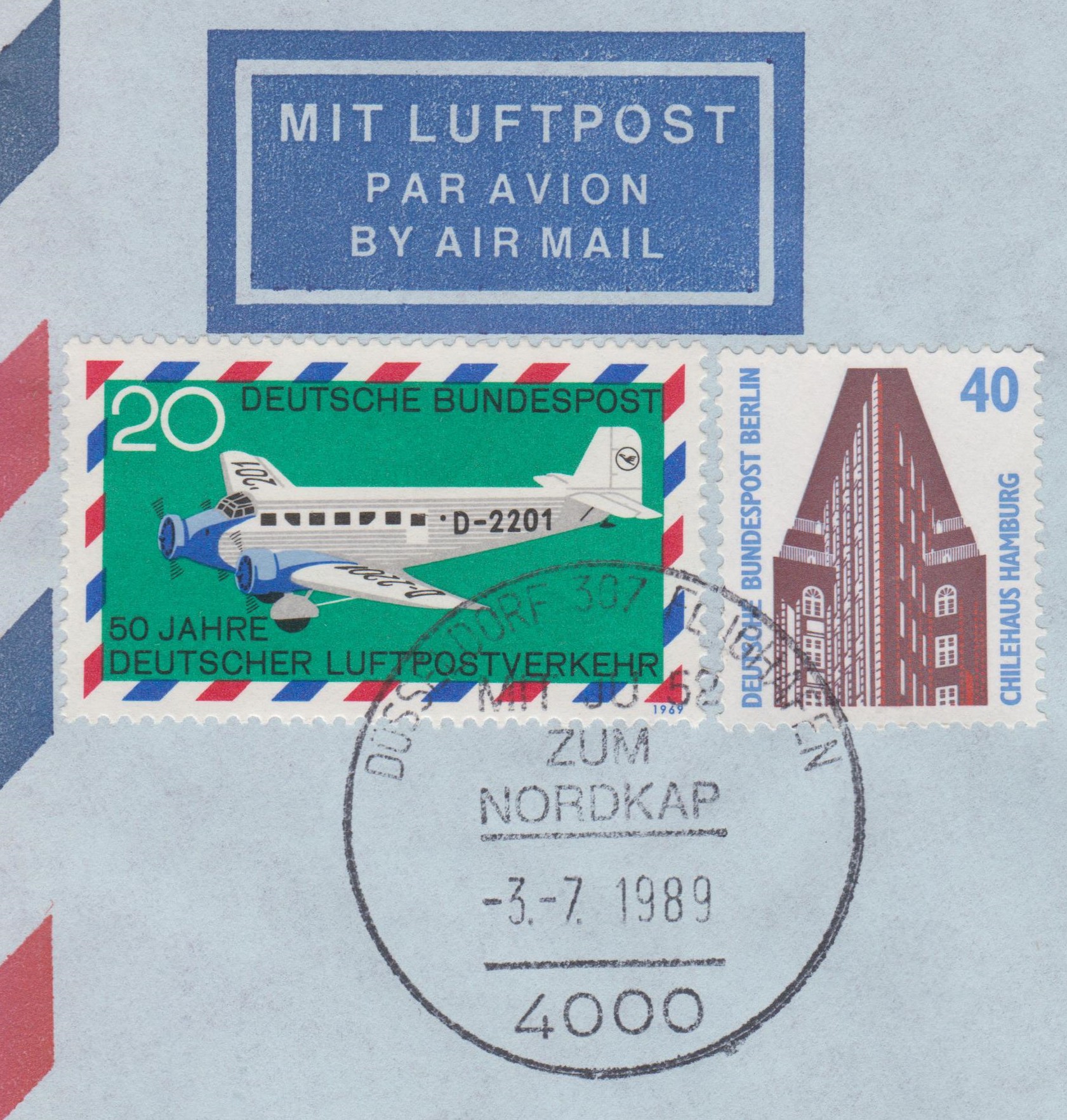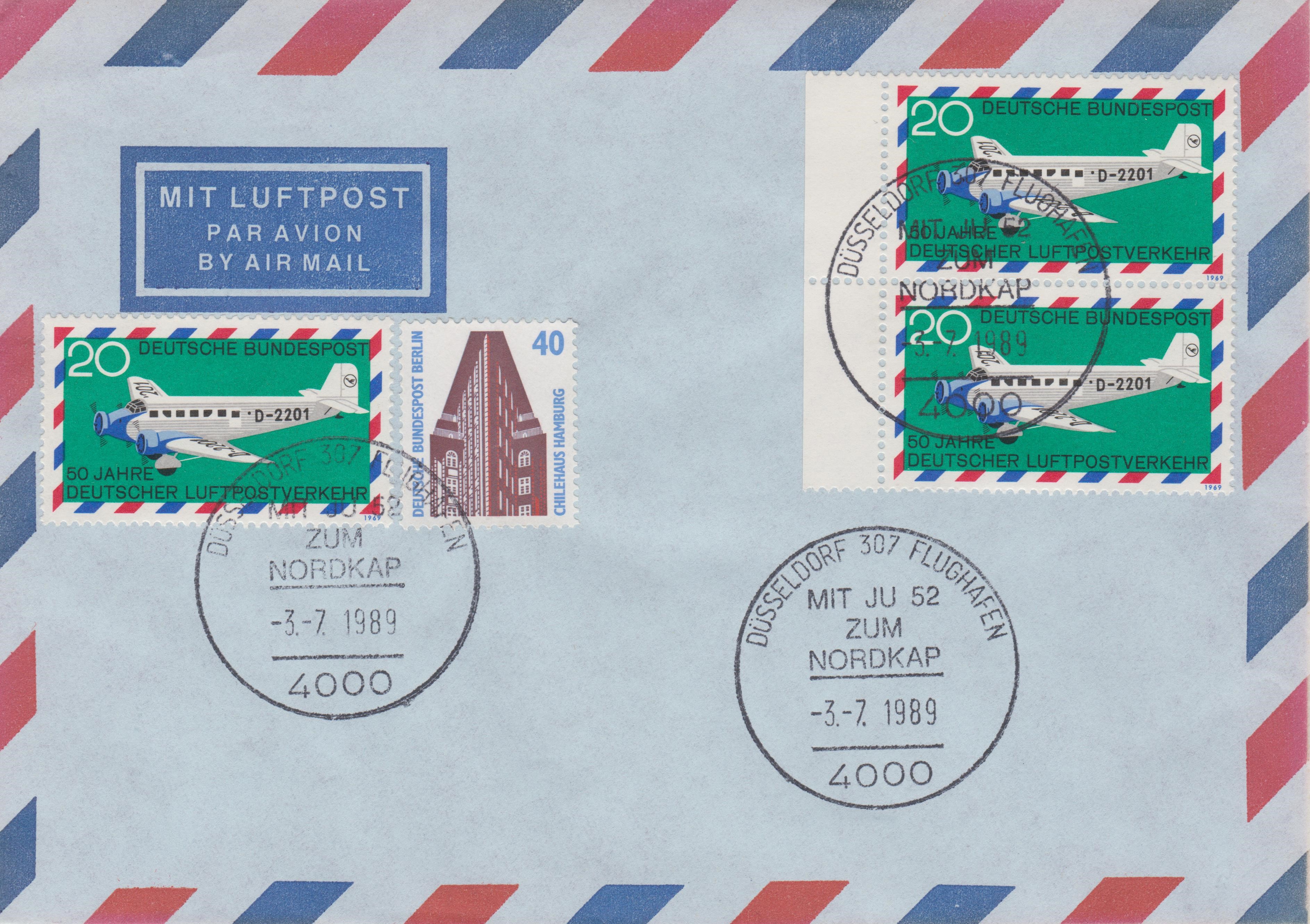 Die Jugendmarke aus dem Jahre 2008 (MiNr 2672) mit dem Propeller-Verkehrsflugzeug Junkers Ju 52/3m aus dem Jahre 1932 wurde zusammen mit den drei anderen Marken der Serie mit dem Ersttagsonderstempel Bonn entwertet.