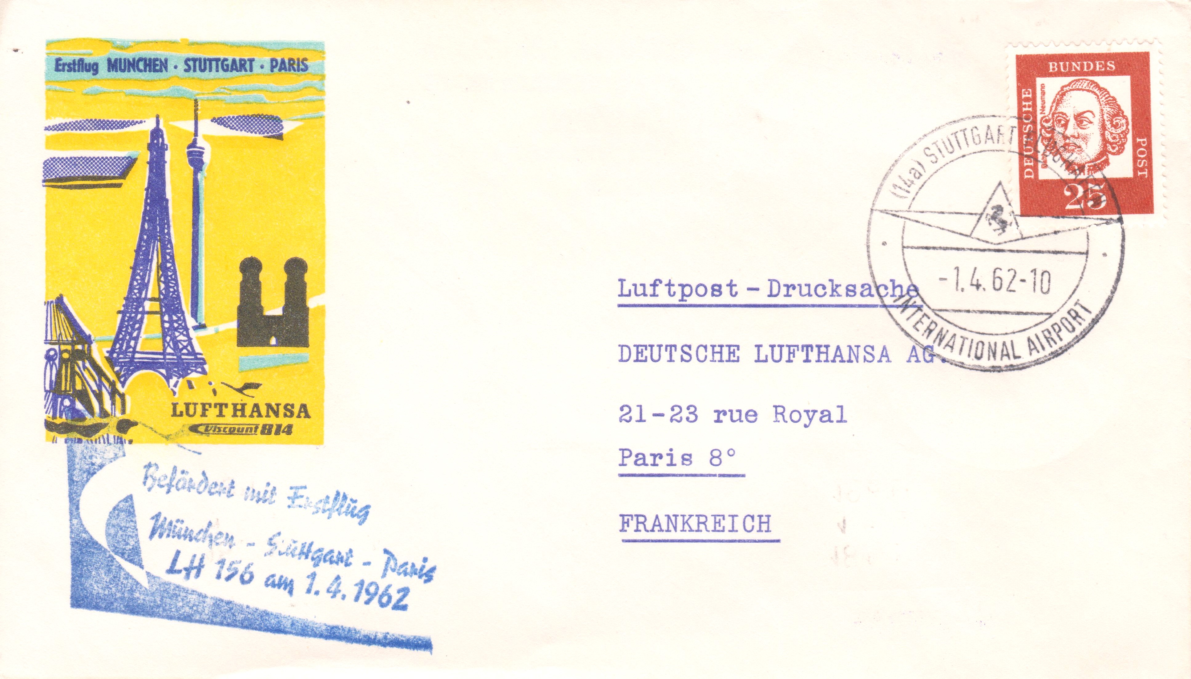 Auf einer Marke aus Berlin (MiNr 617) ist eine Vickers Viscount 700 der Lufthansa abgebildet.