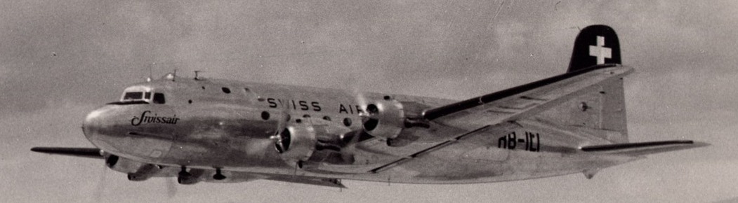 Für den Erstflug stand auf dem Flughafen Genf-Cointrin hingegen diese DC-4 mit der Kennung HB-ILI der Swissair bereit: