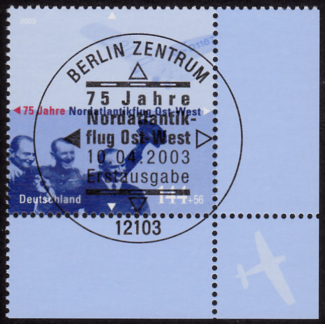 Die Marke der Deutschen Post AG "Für die Briefmarke 2003" würdigt den 75. Jahrestag des ersten Nordatlantikflugs in Ost-West-Richtung. Es handelt sich hierbei eigentlich um die regelmäßige Marke zum "Tag der Briefmarke" mit dem Zuschlag für die Stiftung zur Förderung der Philatelie und Postgeschichte.