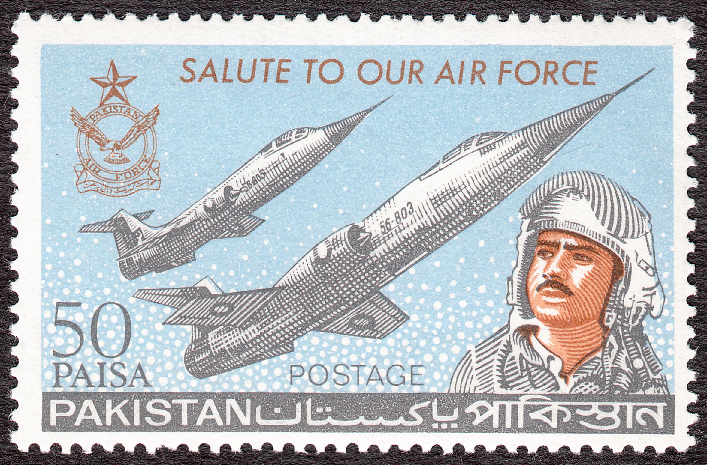 Dieses Postwertzeichen aus Pakistan zeigt die beiden Exemplare mit den Kennungen "56-803" sowie "56-805":