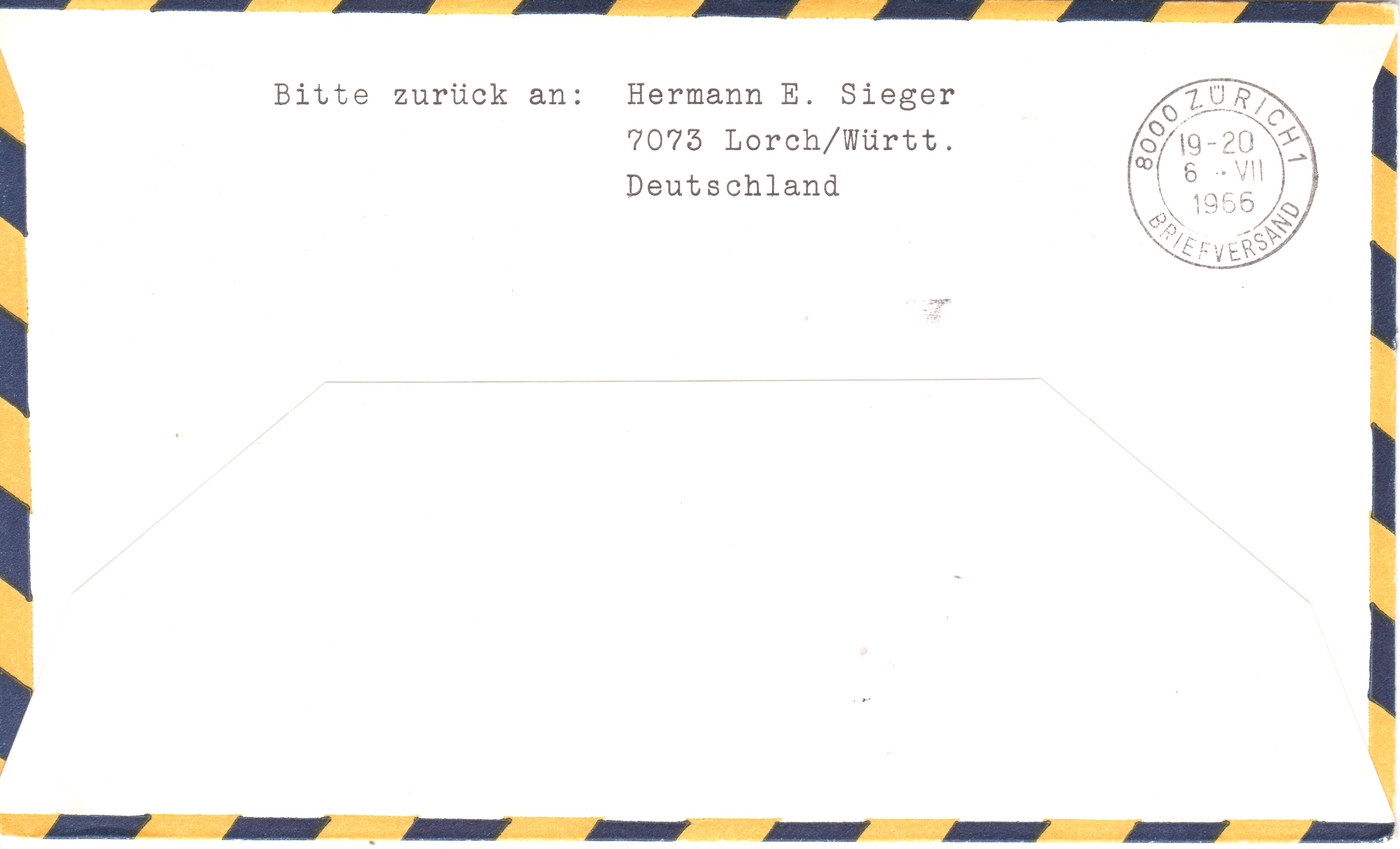 Diese Luftpost-Drucksache wurde mit einer BOEING 727 auf dem Lufthansa-Erstflug LH 314 DÜSSSELDORF - ZÜRICH befördert: