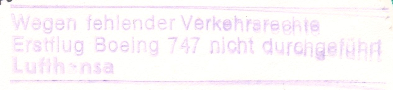 Dieser für den 29.03.1983 mit einer BOEING 747 geplante Erstflug LH 560 Frankfurt - Lagos wurde laut Nebenstempel "Wegen fehlender Verkehrsrechte nicht durchgeführt":