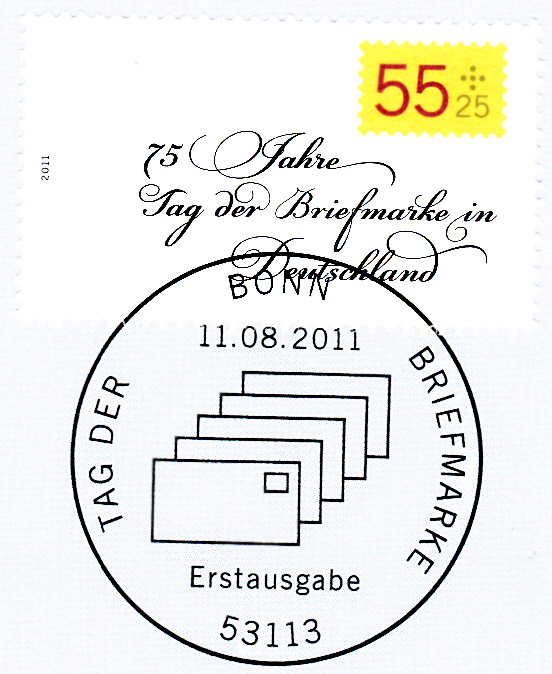 Diese Marke zum Tag der Briefmarke 2011 wurde mit dem Ersttagsonderstempel Bonn entwertet.