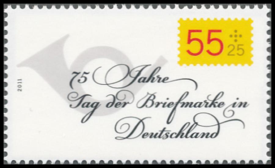 Zum Jubiläum "75 Jahre Tag der Briefmarke" erschien 2011 bei der Deutschen Post AG diese Marke mit Zuschlag (MiNr 2882).