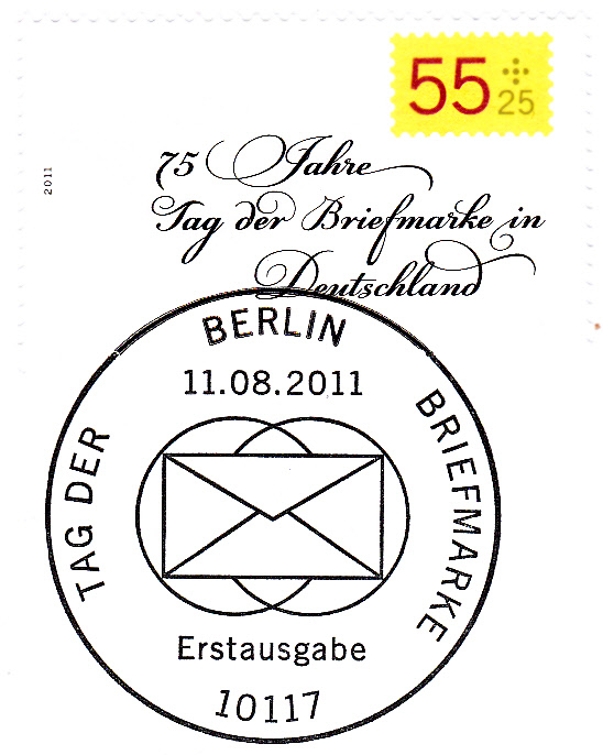 Diese Marke zum Tag der Briefmarke 2011 wurde mit dem Ersttagsonderstempel Berlin entwertet.