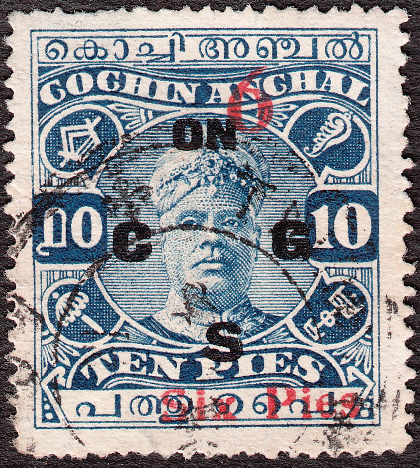 Foren-Übersicht Fragen und Diskussion Übersee Asien Indien Vertragsstaaten und Feudalstaaten Cochin - Dienstmarken MiNr. D 34 - 6 Pies auf 10 Pies dunkelblau