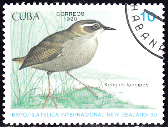 Auf einer Marke aus Neuseeland (MiNr 1292) sehen wir eine Riesenschnecke, einen Felsenstummelschwanz (Xenicus gilviventris) und einen Hamilton-Frosch (Leiopelma hamiltoni). Michel nennt fälschlicherweise den Namen Felsschlüpfer (Salpinctes obsoletus), das wäre aber der oben erwähnte Felsenzaunkönig.