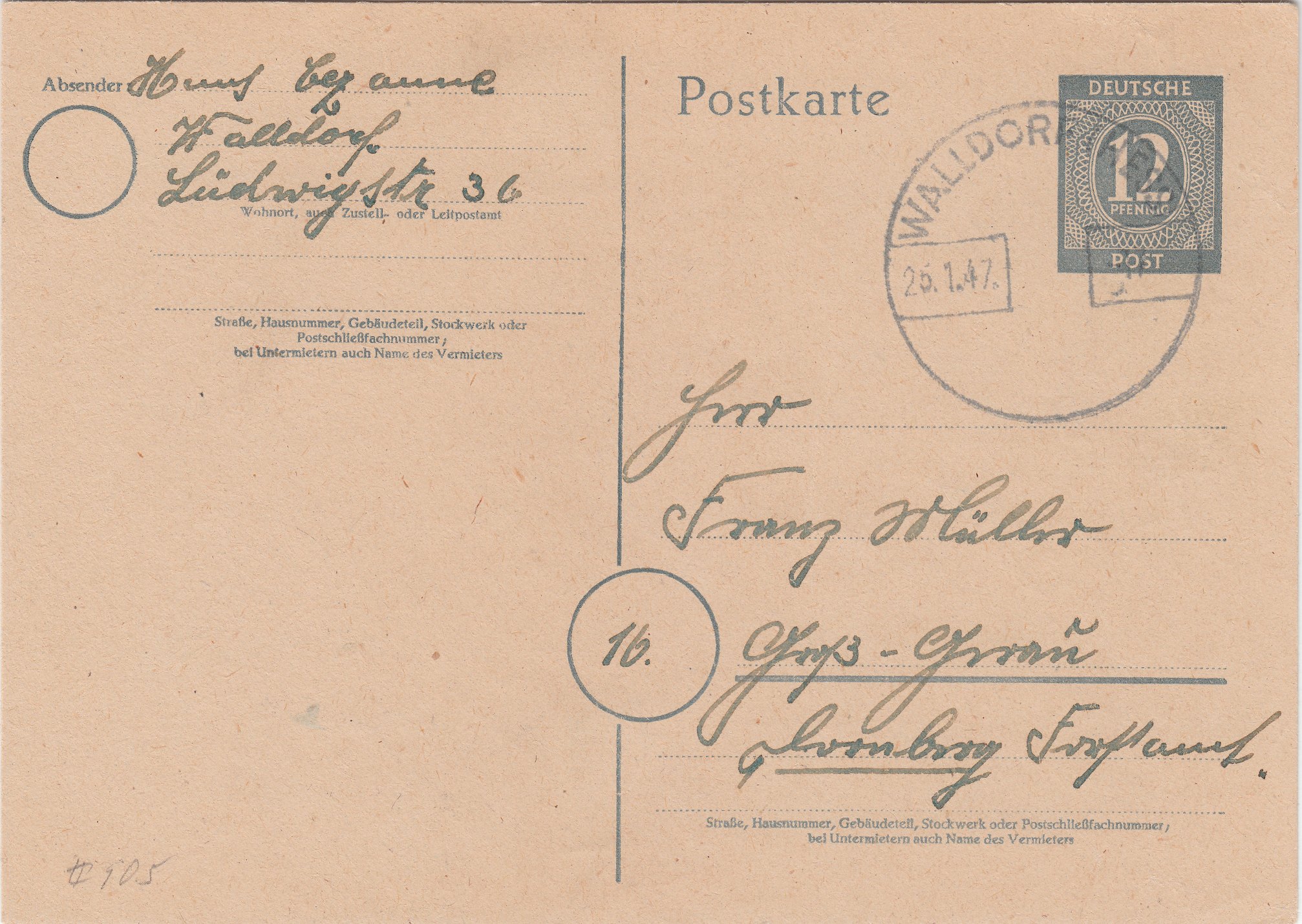 Auf diesem Feldpostbrief wurde am 25.10.1943 um 20 Uhr ein solcher aptierter Tagesstempel abgeschlagen.