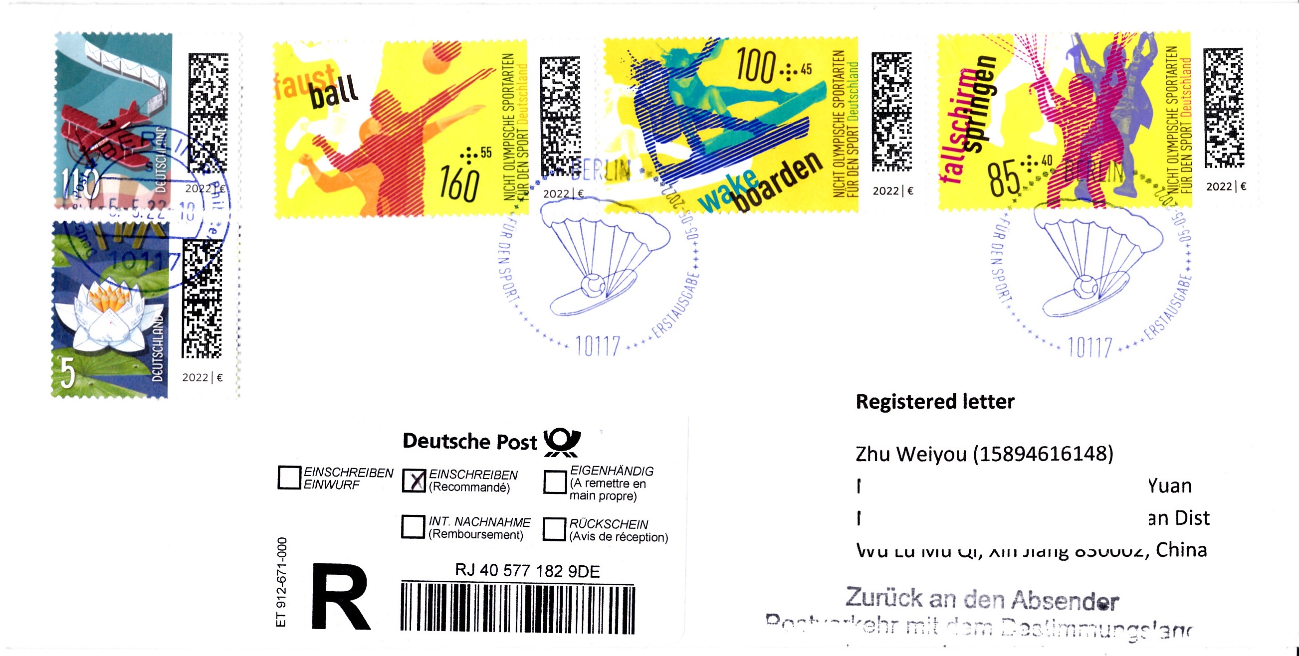 Dieser Brief nach China wurde an den Absender zurückgeschickt.