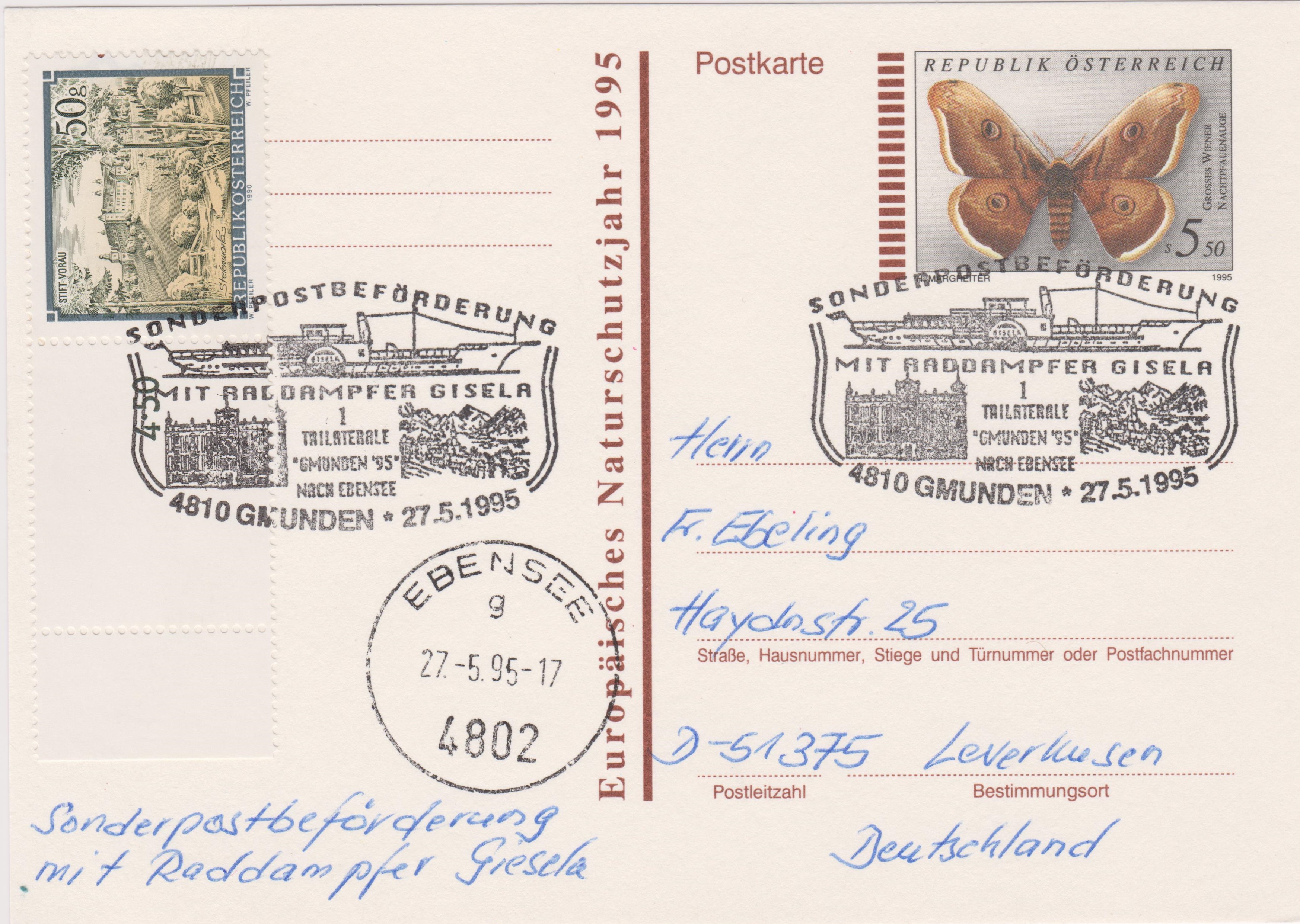 Zum direkten Vergleich zeige ich Euch diesen Beleg, der nicht per Floss befördert wurde, sondern lediglich mit einem zu diesem Thema passenden Sonderstempel entwertet wurde: