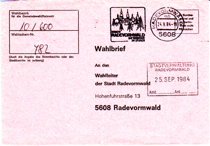 Hier ein Wahlbrief aus der Kummunalwahl in NRW im Jahre 1984